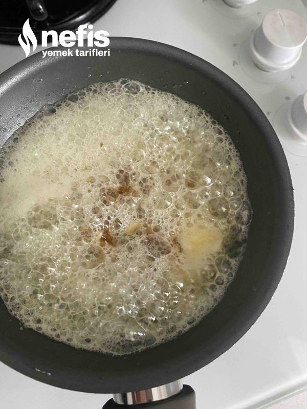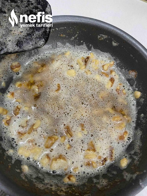 - Eriştemiz pişerken küçük bir tavada tereyağını eritelim hafif kavuralım ve ceviz içini ekleyelim 1/2 dakika kadar daha kavuralım kızarmaya başlayınca ocakta alalım.