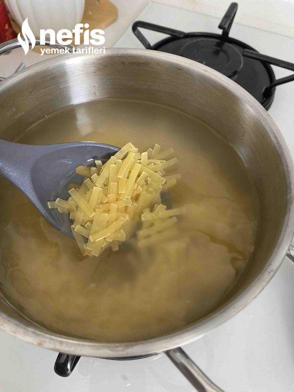 - Üzerine daha sonra eriştelerimİzi ekleyip 10-13 dakika kadar pişirelim ( konut imali ve hazır eriştelerin pişirme mühletleri farklılık gösterebilir).