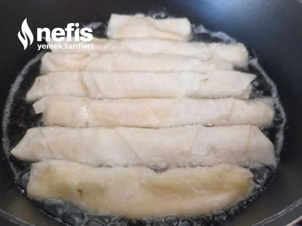 - Diğer taraftan uygun bir kaba bol sıvı yağ alalım ve kızgın yağın üzerine sigara böreğini yerleştirelim, kızaran tarafı çevirip her tarafın kızarmasını sağlayalım. Sıcak servis yapalım afiyet olsun.
