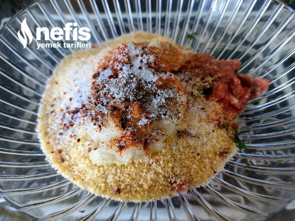 - Öncelikle uygun bir kaba köftenin materyallerini alalım güzelce yoğuralım.