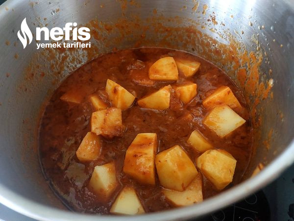 - Kızgın yağın üzerine soğanı ek edelim yakmadan kavuralım ,patatesi ve havucu ek edelim ,kaşık yardımı ile karıştıralım kaynamış olan suyu ek edelim.