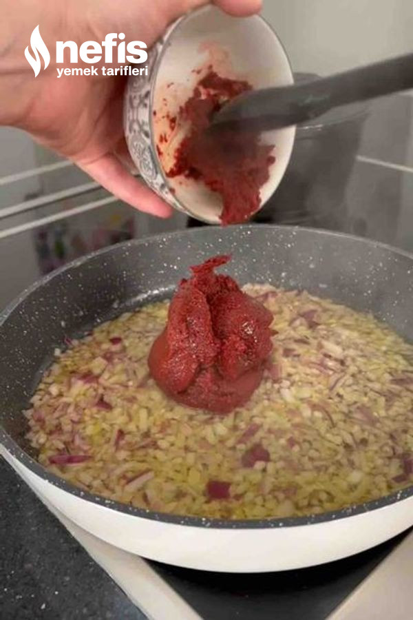 2. Diğer yandan, soğanları zeytinyağı ile kavurun, akabinde biber salçasını ekleyip kısa bir mühlet daha kavurun.
