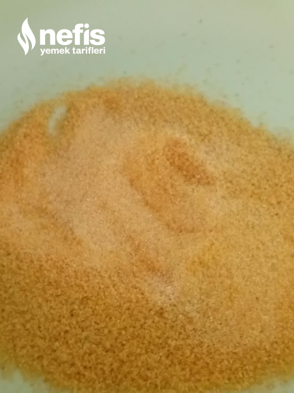 - Diğer taraftan, bulguru ve irmiği sıcak su ile ıslatalım ve yaklaşık 20 dakika kadar bulgur şişene kadar bekletelim.