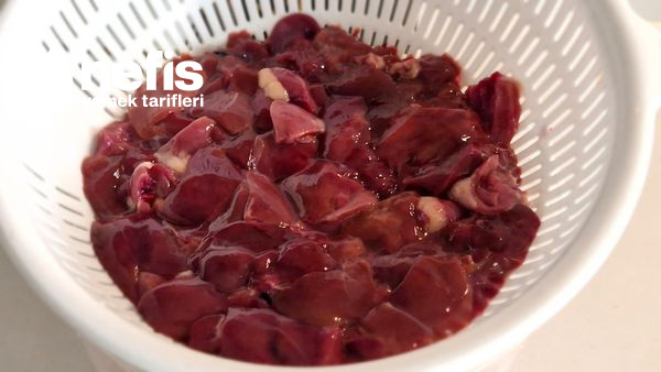 1. Tavuk ciğerini çok ufak olmayacak formda doğrayıp,yıkayalım ve süzgece alalım.