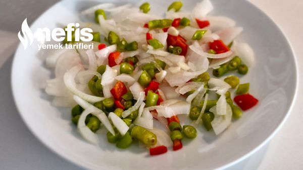 2. Kuru soğanı arti halinde kesip doğrayalım,biberleri de yemeklik doğrayıp hazır edelim.