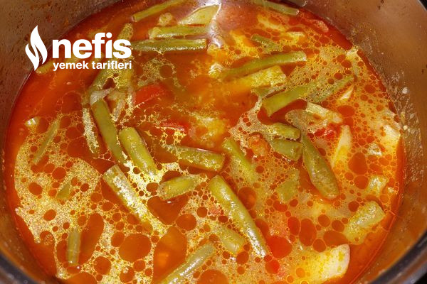 - Salçayı ek edelım kokusu çıkana kadar kavuralım, tamizlenmiş ve ortadan ikiye kıymış olduğumuz fasulyeleri ek edelim, bir iki kaşık yardımı ile karıştıralım ve kısık ateşte yumuşayana kadar pişmeye bırakalım.