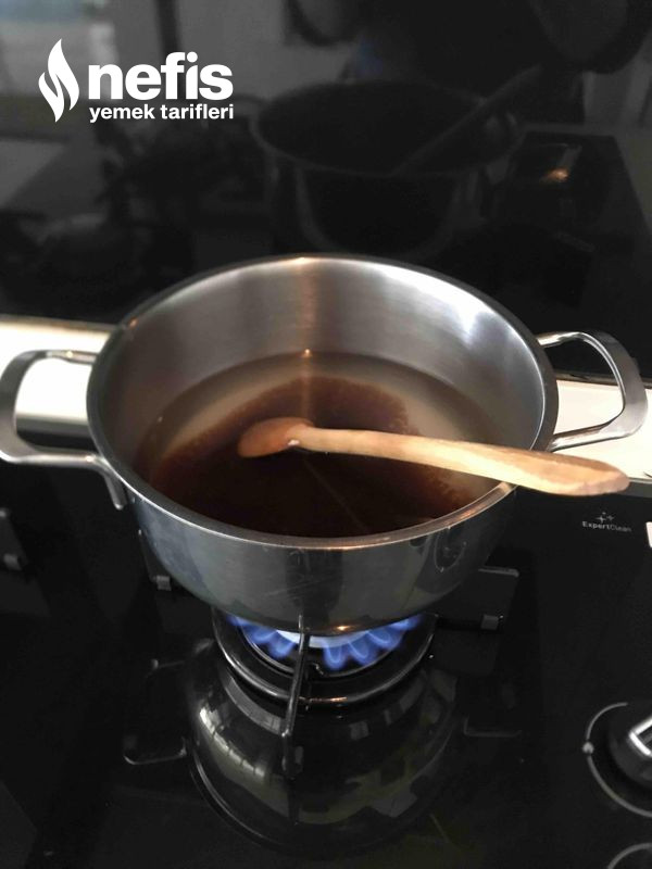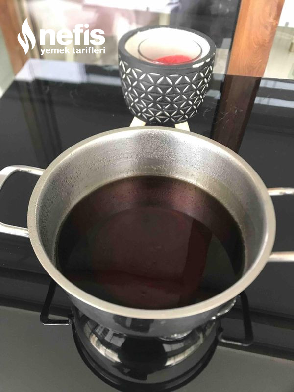 1. Öncelikle şerbet için, bir kaba şeker, su, pekmez, limon suyu konulur, karıştırılır ve 10-15 dakika kaynatılır ve soğumaya bırakılır.