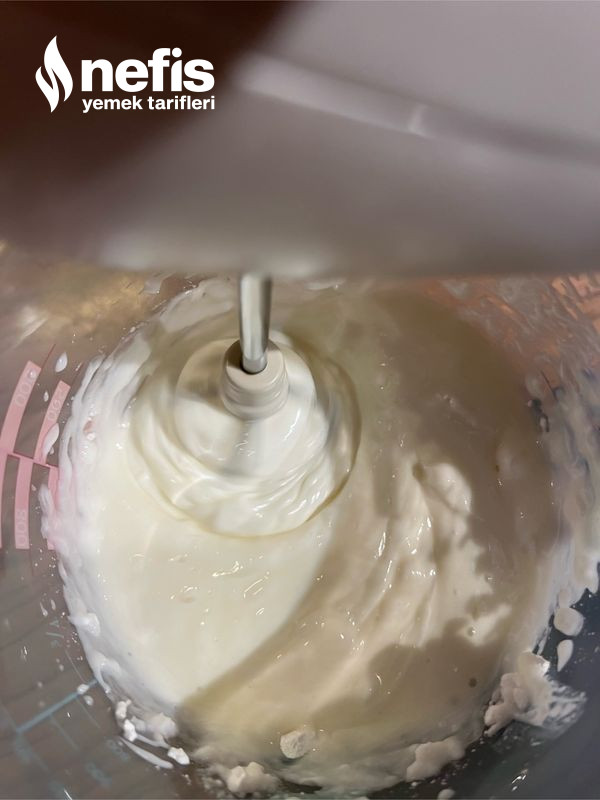 - 2 adet mixer ile çırptığımız kremayıda ek edip tekrar karıştıralım.