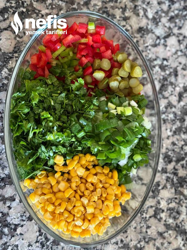 - Bir borcam ya da salata kasesinde nohut, mısır ve zerzevatları karıştıralım.