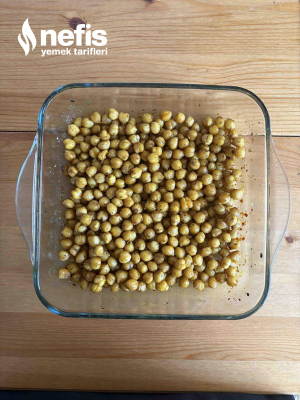 - Haşlanmış nohutları zeytinyağ ve baharatlarla karıştırıp fırına verin 15 dk hafif kızartın.