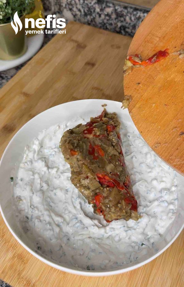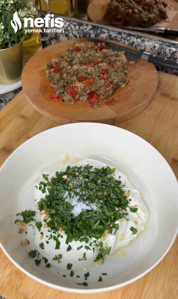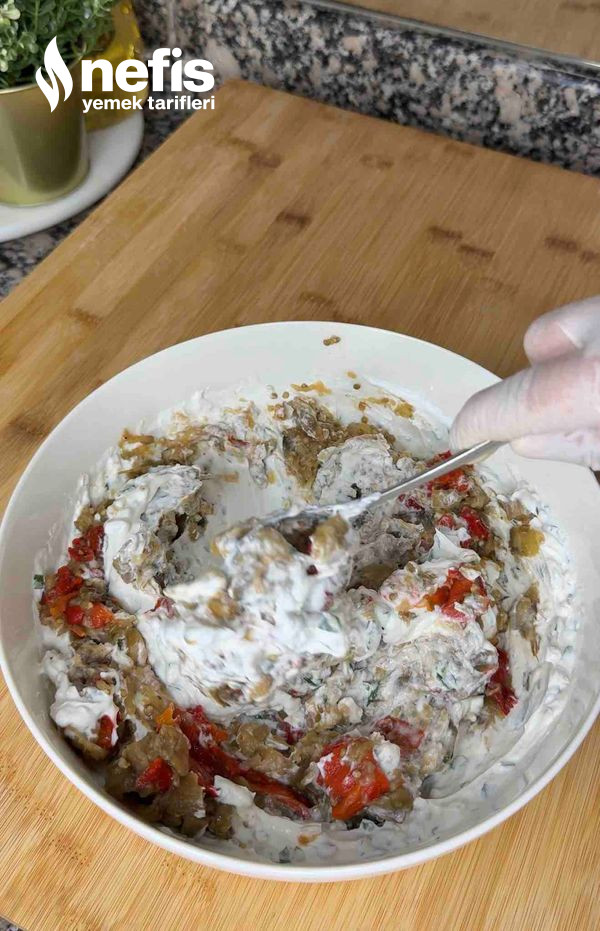 - Patlıcan ve biberi közleyip bıçakla ezelim.
