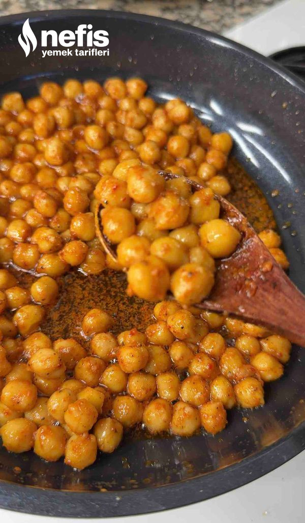 - Tavaya zeytinyağını,nohutları ve baharatları ekleyelim.