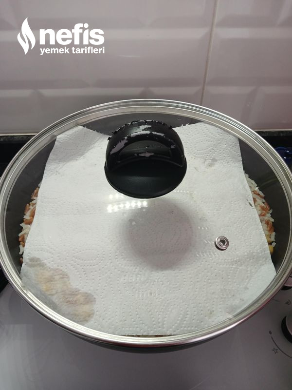 - Pilavın üzerine havlu peçete örtüp 15 20 dakika dinlenmeye bırakalım.