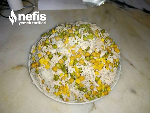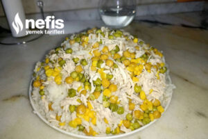 - Üzerine nohut, bezelye, mısırı ve tuzunu ekleyip karıştıralım.