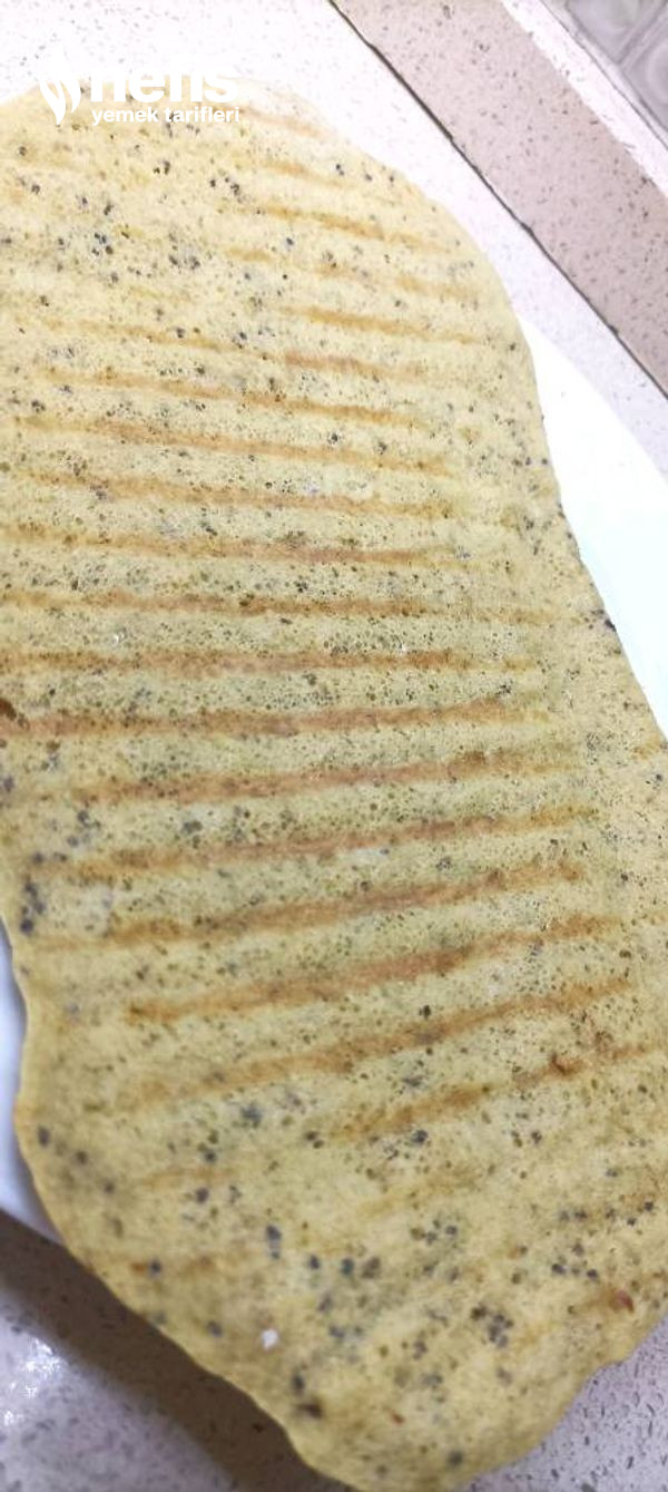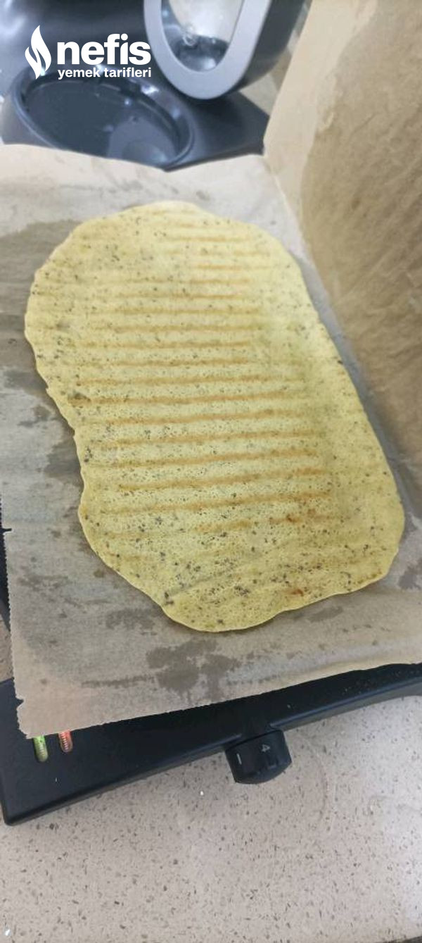 - Bütün gereçleri blenderdan geçirip, yağlı kağıt serilmiş tost makinesine döküyoruz. Önlü artlı pişiriyoruz. Tavada da pişirebilirsiniz.
