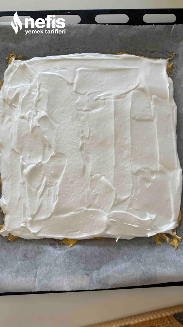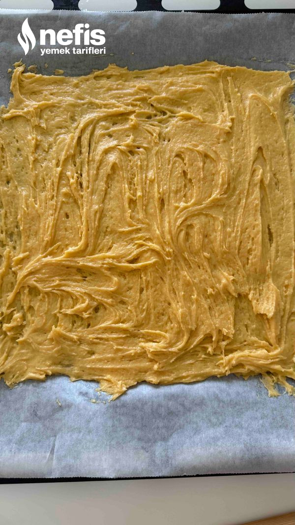 9. Fırın tepsisine yağlı kâğıt yerleştirin ve hamurunu tüm tepsiye sürün.