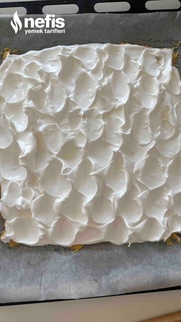 10. Hamurun üzerine merengi yerleştirin ve kaşık yardımıyla dalga biçimi verin.