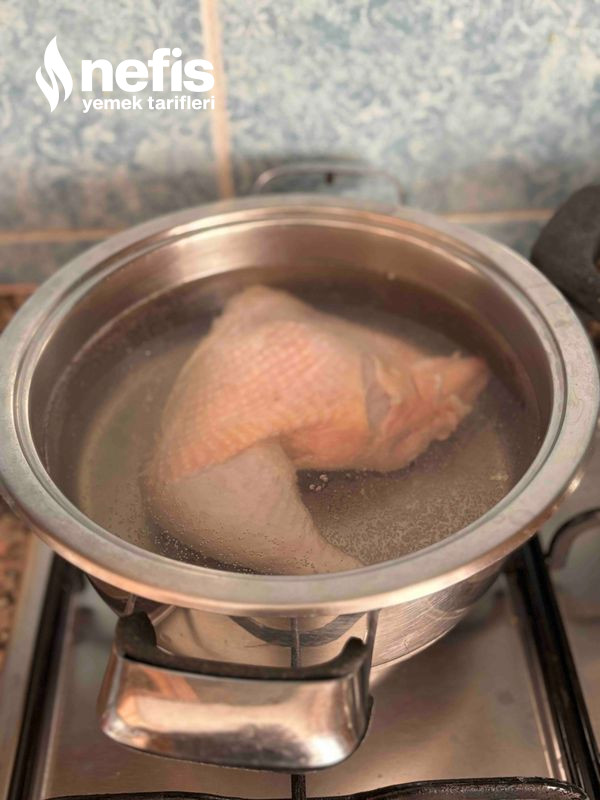 - Tencereye suyu ve tavuğu koyup haşlıyoruz. Haşlanan tavuğumuz soğuyunca modüller halinde didikliyoruz.
