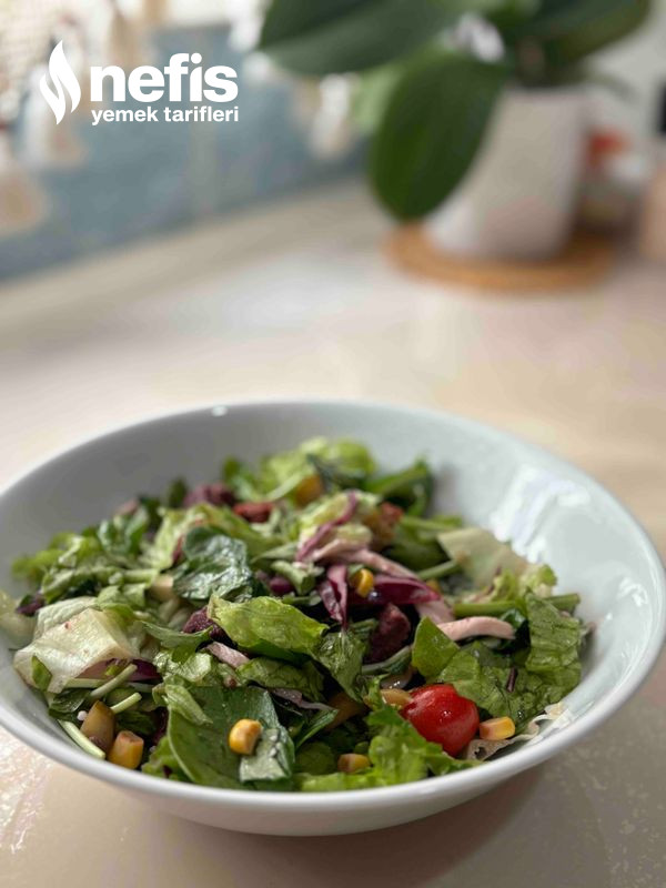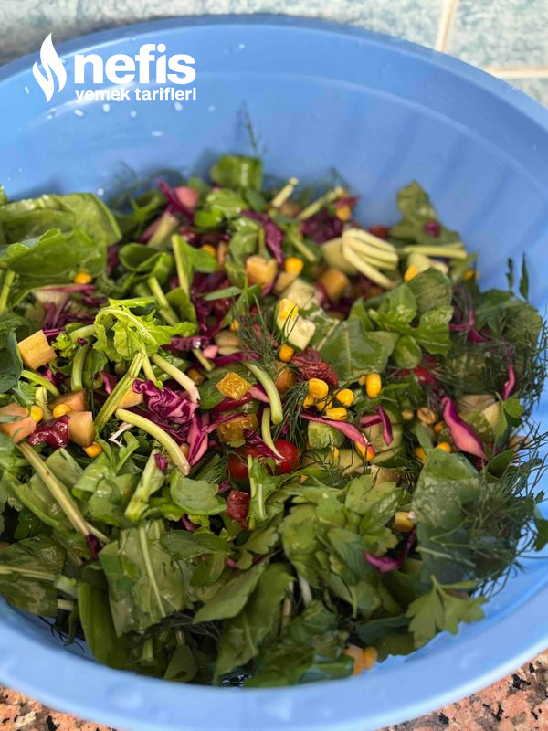 - Limon, zeytinyağı, tuz ve nar ekşisini bir kasede çırpıp salatamıza ekleyip karıştırıyoruz, üzerine birkaç dilim beyaz peynir ve siyah zeytin ekleyip servis edebiliriz. Afiyet olsun.