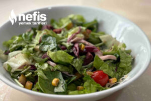 - Limon, zeytinyağı, tuz ve nar ekşisini bir kasede çırpıp salatamıza ekleyip karıştırıyoruz, üzerine birkaç dilim beyaz peynir ve siyah zeytin ekleyip servis edebiliriz. Afiyet olsun.