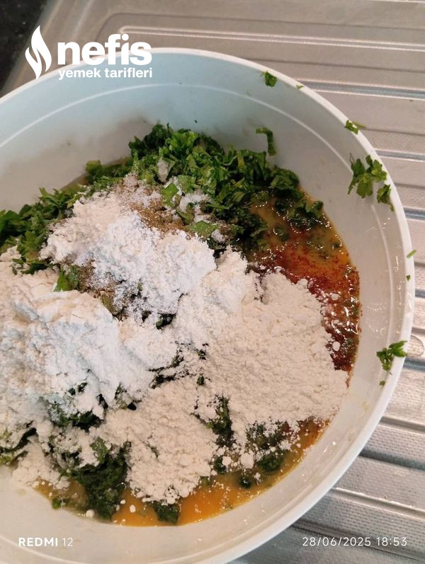 4. Kızınca 1 yemek kaşığı karışımdan tavaya dökerek artlı önlü kızartalım.