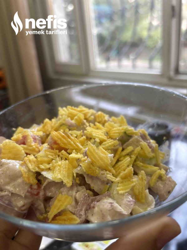 - Hepsini karıştırıp dilerseniz benim yaptığım üzere üstüne sevdiğiniz bir cipsi de elinizde parçalayarak serpiştirebilirsiniz. Afiyet olsun 🫶🏻.
