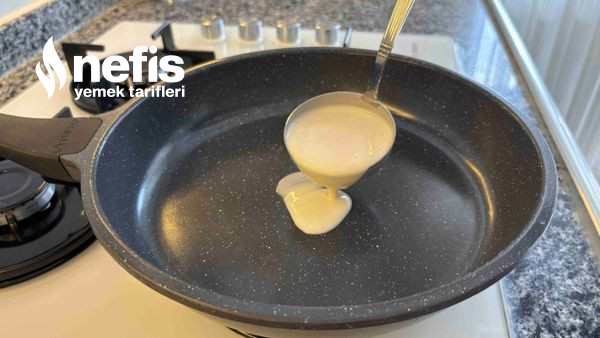 - Orta sıcaklıktaki tavaya dökerek dağıtalım hayli ince hamur dökelim.