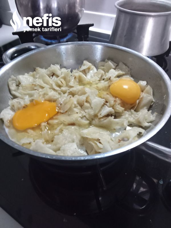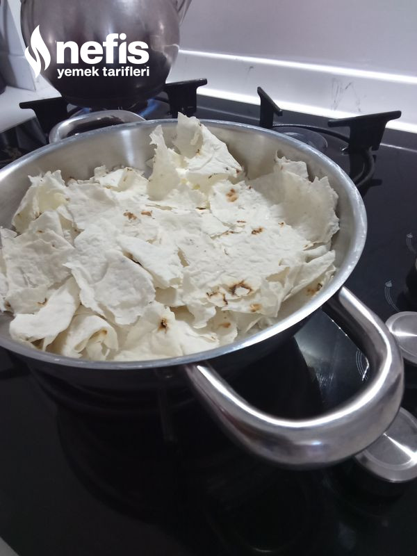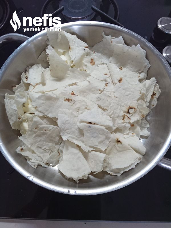 3. Yufka ekmeki küçük modüllere ayırıp küçük bir kaba boşaltıyoruz.