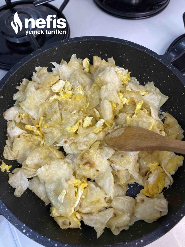 - Üzerine küçük kesimlere böldüğümüz yufkaları ekleyelim ve güzelce karıştıralım hafif ateşte kavuralım tavamızda yufkalarımızın eşit halde pişirelim yumuşak yahut çıtır yapmak sizin istediğinize bağlı afiyet olsun.