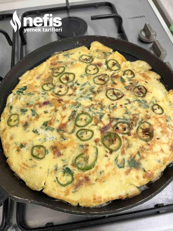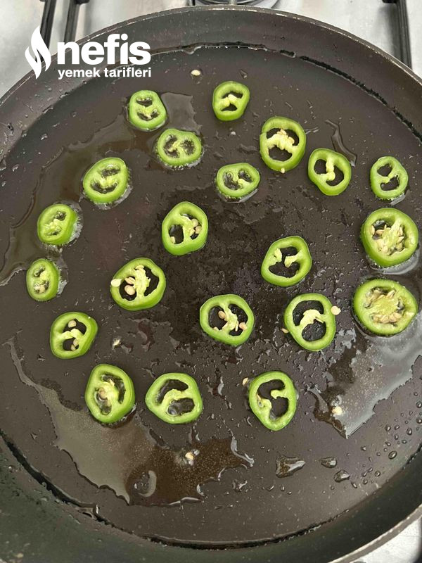 - Tavaya yağı alıp, üzerine ince doğranmış biberi ekleyip hafif pişirip üzerine yumurtalı harçtan döküp, artlı önlü pişiriyoruz. Afiyet olsun 💐