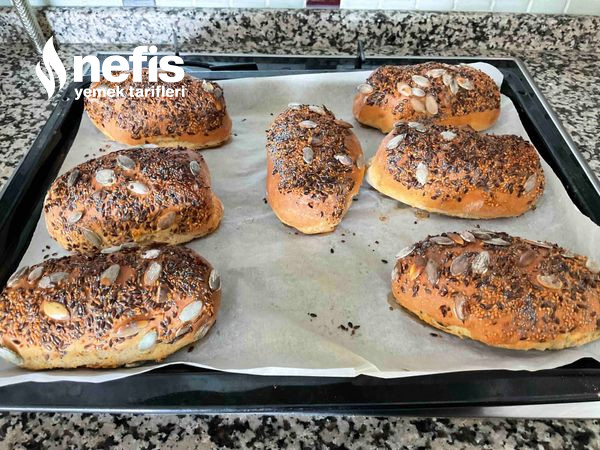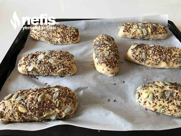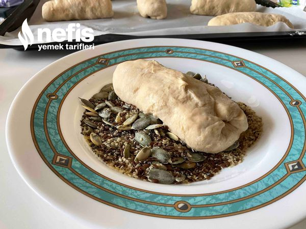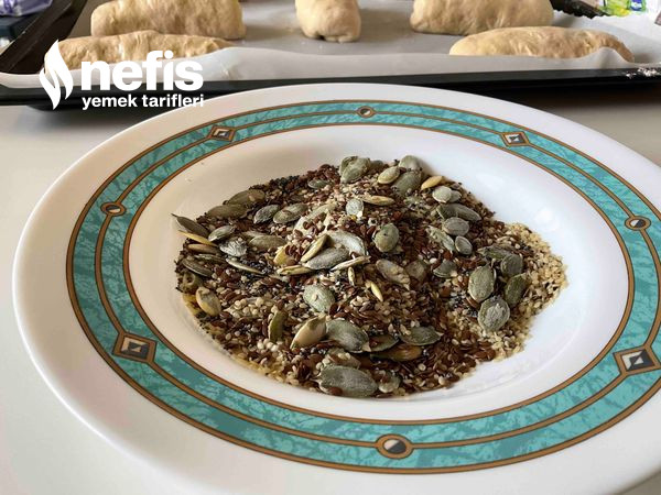 - Üzerini suyla ıslatıp hazırladığınız kabak çekirdeği ,susam ,çörek otu ,mavi haş haş ,keten tohumu ne isterseniz karıştırın.