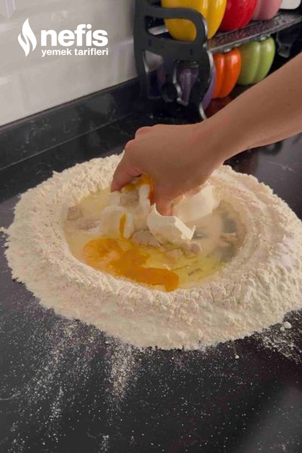 - Unu tezgaha alıp ortasını açın,tuzu kenarlara serpiyoruz( mayayla çabucak karışmasın diye) ,ortaya şeker,maya,yumurta ve margarini koyup güzelce karıştırdıktan sonra suyu ek edip,unu toparlaya toparlaya yumuşak bir hamur yapıyoruz. (sert olmasın).