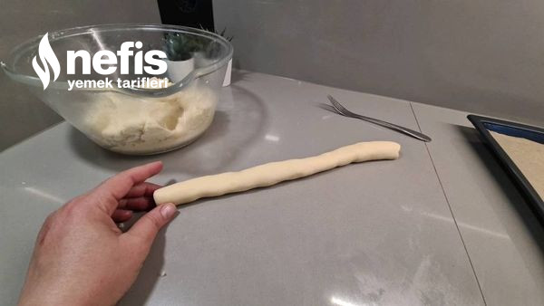 2. Hamurdan mandalinadan büyük modül kopartıp rulo yapalım.
