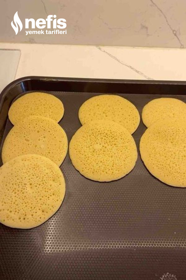 - Tava ısınınca hamurdan (avuç içimiz büyüklüğünde) tavaya döküyoruz.