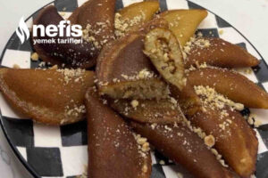 - Hamurun ortasına istediğiniz iç harçtan ekleyebilirsiniz. Ben ceviz kırığı tercih ettim ve hamurun ortasına ceviz kırıklarından ekleyip yarım ay halinde kapattım.