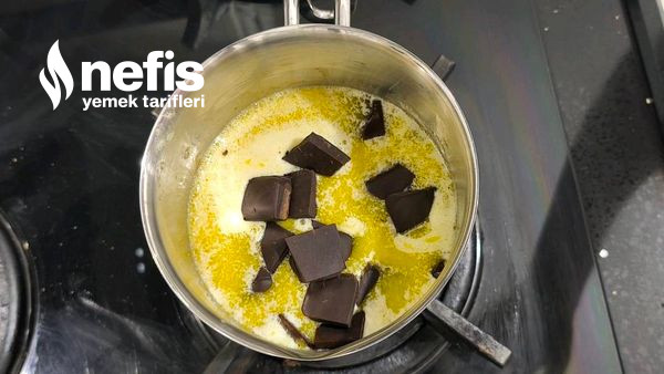 1. Tereyağı eritip çikolatalı içerisine ekleyip, eriyene kadar karıştıralım erimiş sosu soğumaya bırakalım.