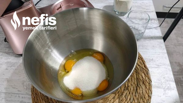 2. Yumurtaları şeker ile köpük olana kadar çırpalım.