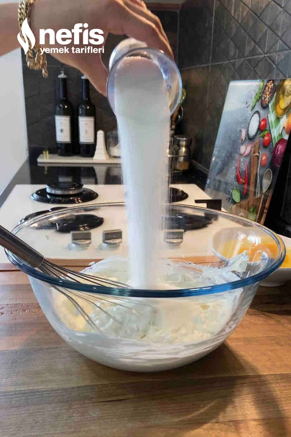 - Tel çırpıcı ile krema kıvamına gelene kadar çırpalım. Şekeri ekleyip tekrar çırpalım.