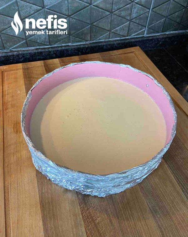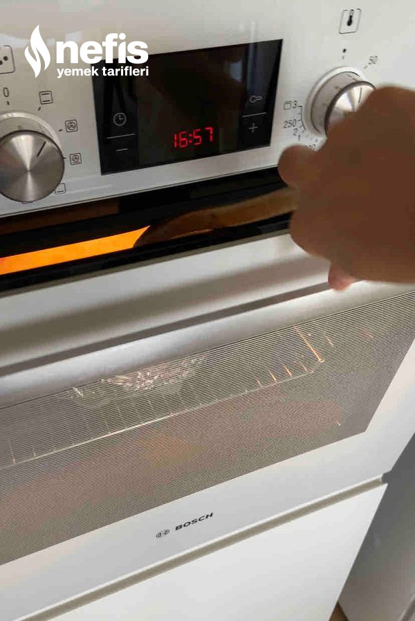 - Kalıbın kenarlarını aleminyum folyo ile sarıp evvelden ısıtılmış 170 derecelik fansız fırına verelim.
