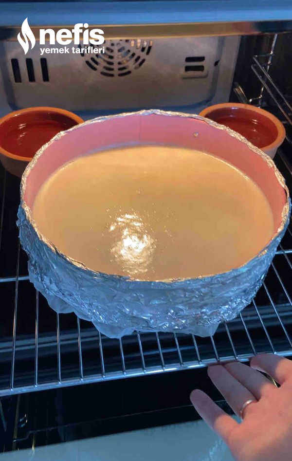- Fırının içine uygun bir kapta su bırakalım. 55 dk kadar pişirelim.