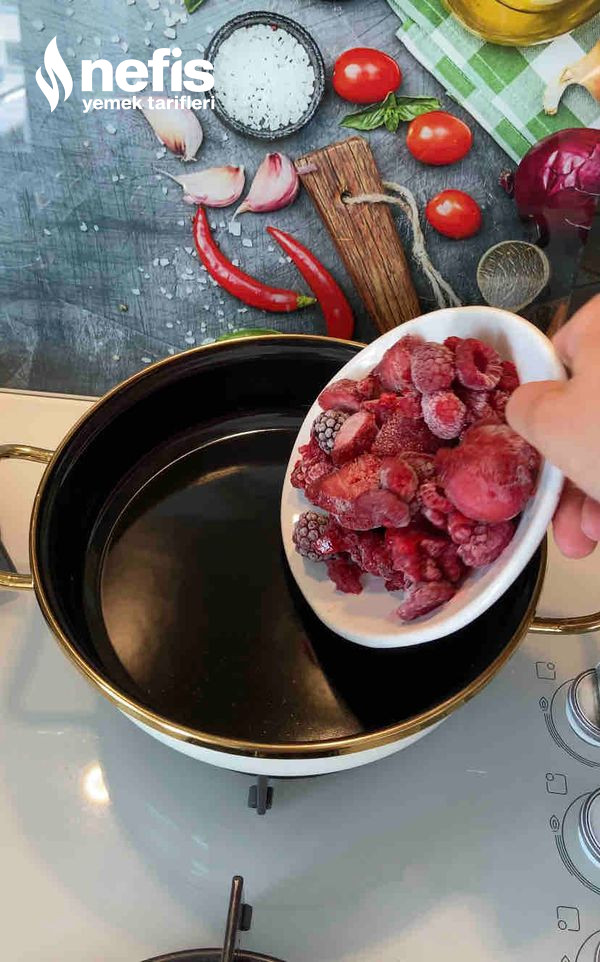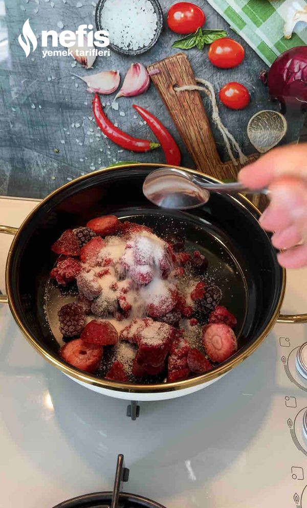 - Sos için; meyveleri uygun bir tavaya alıp üzerine şekerini ekleyip kaynatalım.