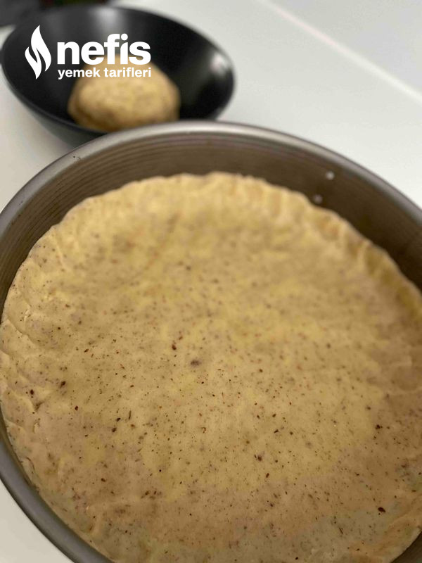 6. Dinlenmiş hamuru kalıbın tabanına bastırarak yerleştirin kenarlarınıda tıpkı formda hafif yükseltin.