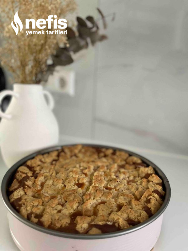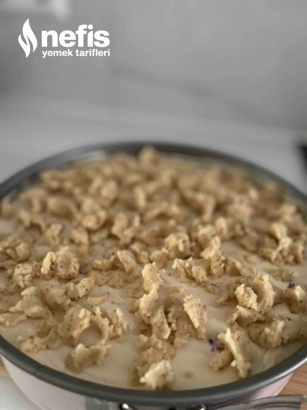13. Buzdolabında dinlenmiş küçük hamur modülünü elinizle ufalayarak ig harcın üzerine serpiştirin.
