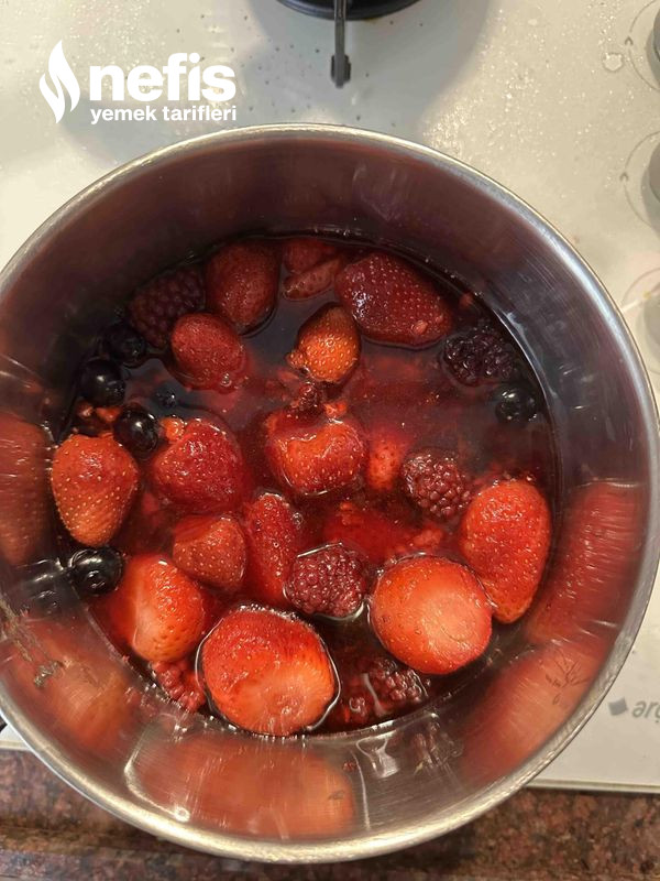 - İç harcı için; tencereye meyveleri ve yarım su bardağı suyu koyalım kaynatalım.