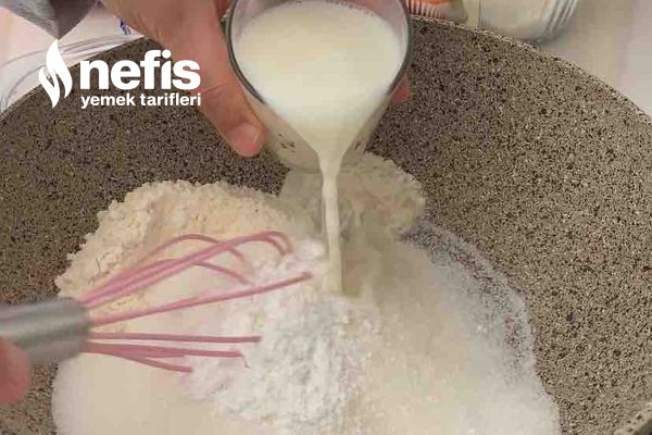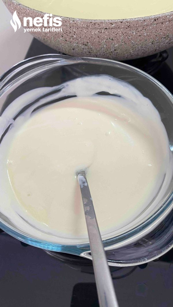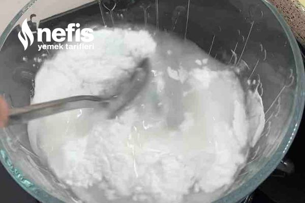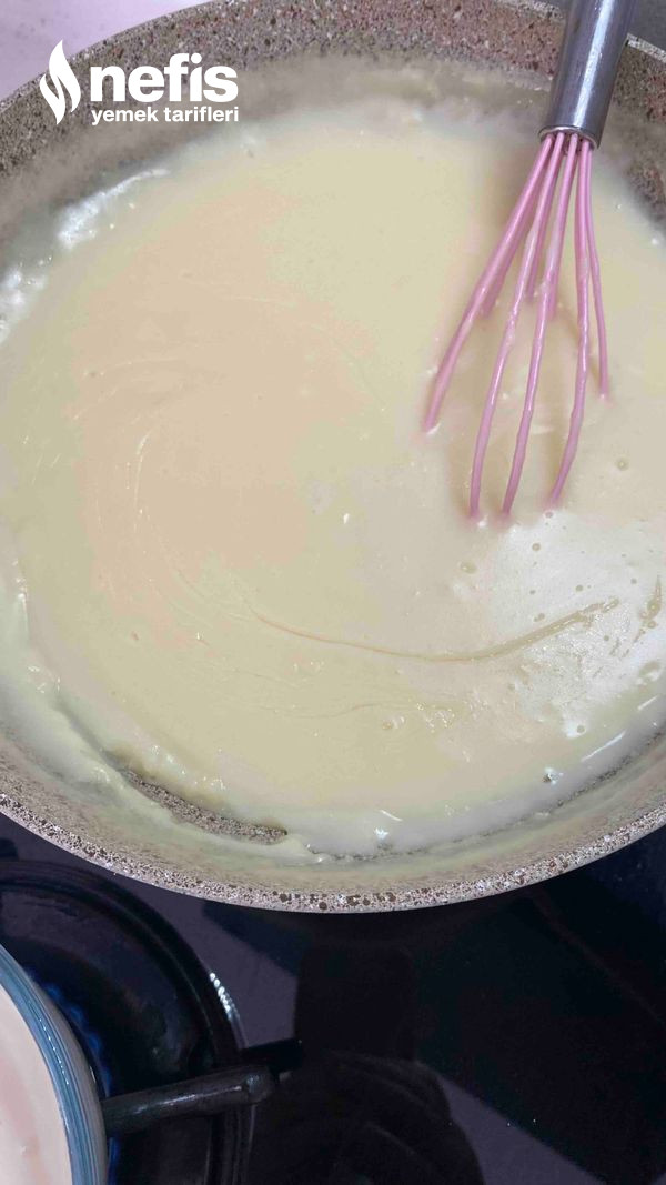 - Öncelikle muhallebi yaparak başlıyoruz , margarin hariç tüm gereçleri bir kap içerisinde alıp daima çırparak karıştıra karıştıra pişiriyoruz.