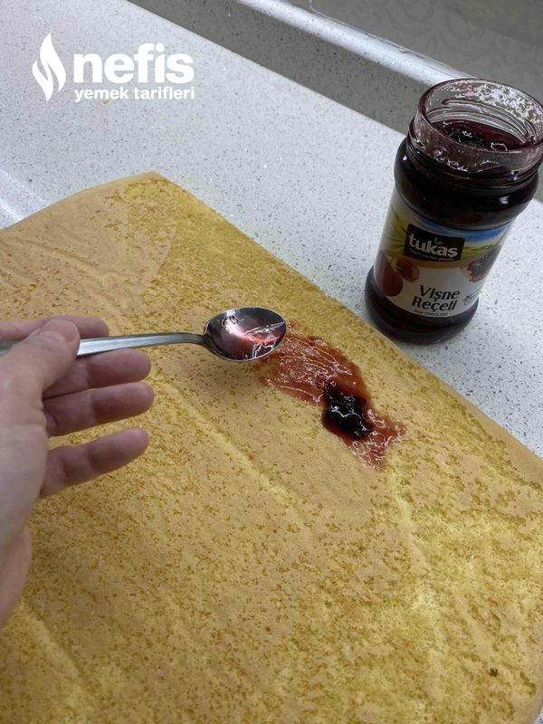 - Pişen kekimizin üstüne vişne reçeli sürüyoruz.