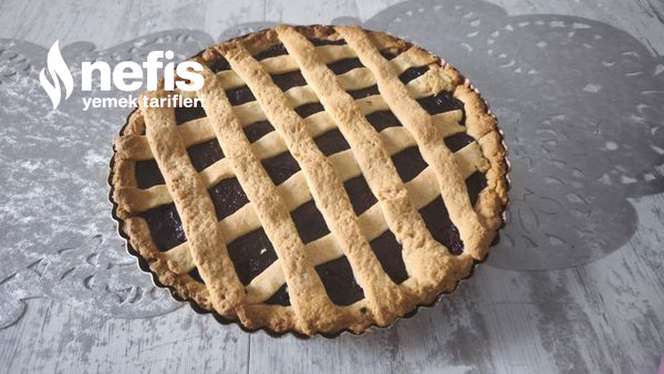 - Kalan küçük hamuru açalım ve şeritler halinde keselim. Tart üzerine hal verelim.
