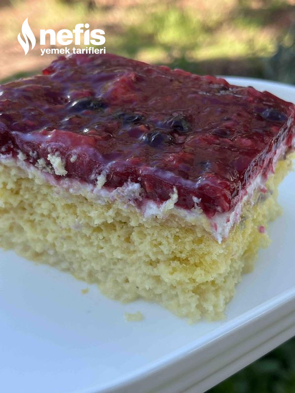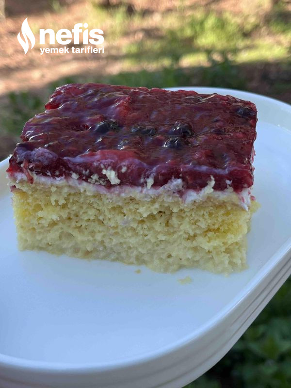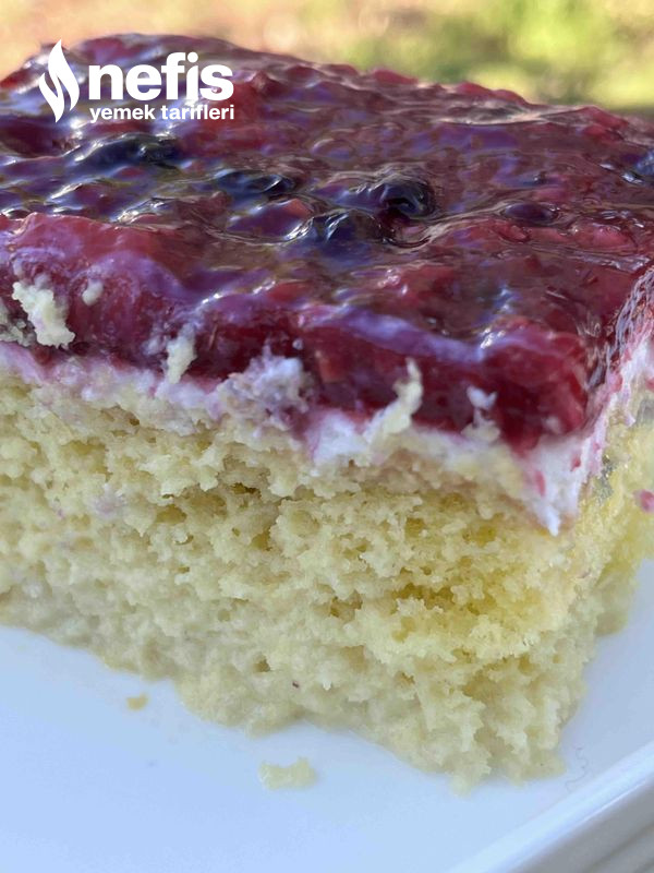 - Krem santiyi sütle çırpın ve kekin üzerine yayın son olarak meyveli sosu da üzerine döküp yayın ve dolapta 3-4 saat hatta vakit varsa 1 gece dinlendirin soğuk servis yapın afiyet olsun 💐🤗.