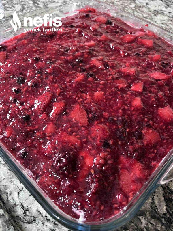 - Öncelikle meyveli sos için meyveleri tencereye alın, üzerine şeker ve suyun yarısı ekleyip ocağa alın kaynamaya başlayınca 2-3 dk kadar daha kaynatıp kalan su ile nişastayı açın ve sosa ekleyip karıştırarak pişirin .
