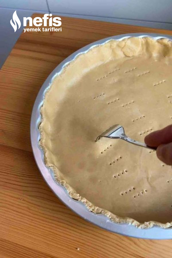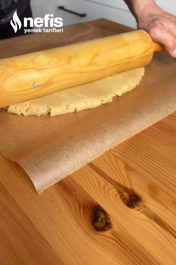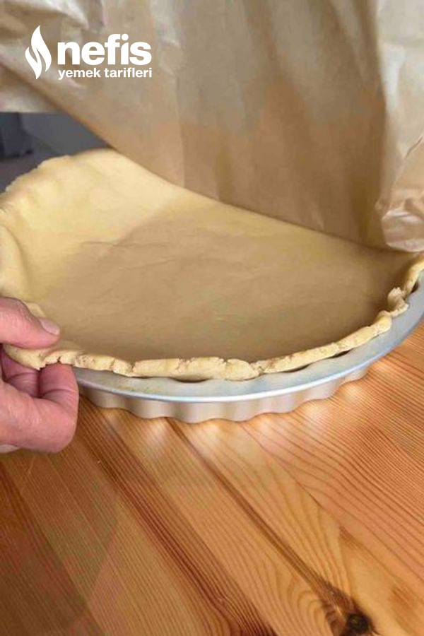 3. Kalan hamuru merdane ile açalım ve tart kalıbına yerleştirelim.